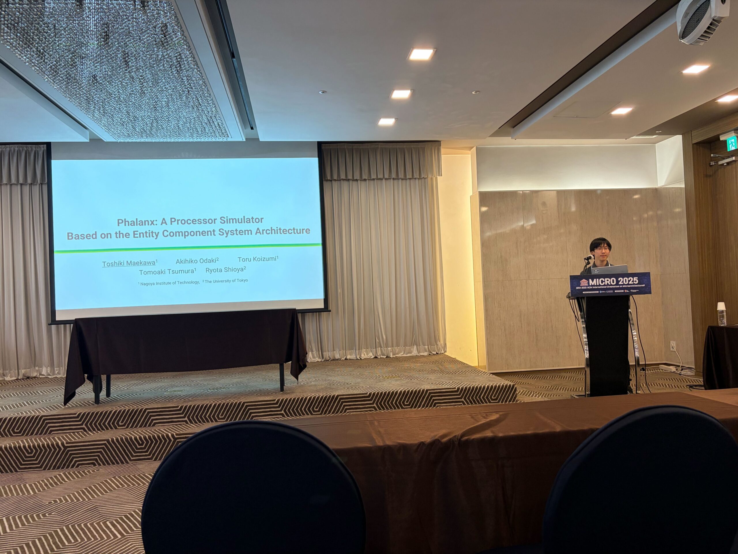 M2の前川隼輝くんが,コンピュータ・アーキテクチャ分野のトップカンファレンスMICRO2025に併催されたワークショップCAMSにおいて,研究発表を行いました。